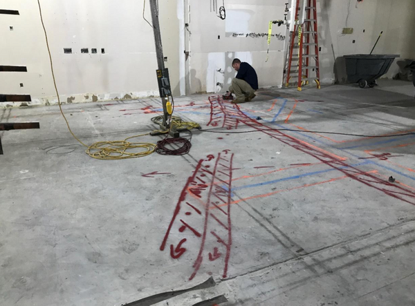 GPRS was called out by a reputable General contractor who was working on a large-scale job for a high- end client (Forbes top 150 business.) The job they were tasked with was to completely buildout two existing shell, multi- story buildings to allow the client to move into the space(s). The concrete in these buildings is reinforced with post tension, rebar, and conduit, which makes for a complicated task for any GPR scanning company. The GC decided to employ a company to perform the cutting/coring and the GPR scanning all in one, unfortunately they struck 2 post tension cables very early on in the process. The next plan was to use X-ray along with another GPR scanning firm, and once again some post tension cables were hit. As frustrations rose within the ranks of the GC’s staff, they decided to discuss the issue internally, and a project manager up in Seattle was raving about the excellent work that GPRS performed on several projects up in that area. To say the least, the PM was reluctant to use any GPR scanning firm, but did agree to give GPRS a shot.