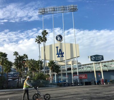Senior Project Manager Alfredo Espinal scanning and marking utilities at Dodger Stadium |