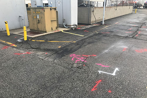 Ground Penetrating Radar Systems, LLC, - GPRS - of Southern California was contacted by a construction company to locate underground utilities. The scope of work consisted of scanning an approximate 20’x20’ area prior to drilling for 5 new bollards. The bollards will be placed to shield a new electrical pad that will be replacing an existing pad. We first connected to all visible conduits, transformers and stand pipes; all findings were marked on the surface with paint. We then scanned a 2’ grid in both directions with GPR and noted all depths on the surface; most findings were approximately 2’-6’ deep. The customer was surprised to see several findings in the area which we then highly recommended to hand dig to the desired dep GPR scanning is a great tool to use for post tension cables, rebar, and conduits; it can also be used to scan for underground utilities prior to digging or excavating. GPRS has offices throughout the entire state of California and performs projects in cities like; Ventura, Santa Barbara, Thousand Oaks, San Luis Obispo, Bakersfield, Lancaster and the greater Los Angeles area. Please contact Alfredo Espinal at 805-729-5877 or alfredo.espinal@gprsinc.com to learn more about ground penetrating radar and how GPRS can assist in your projects.